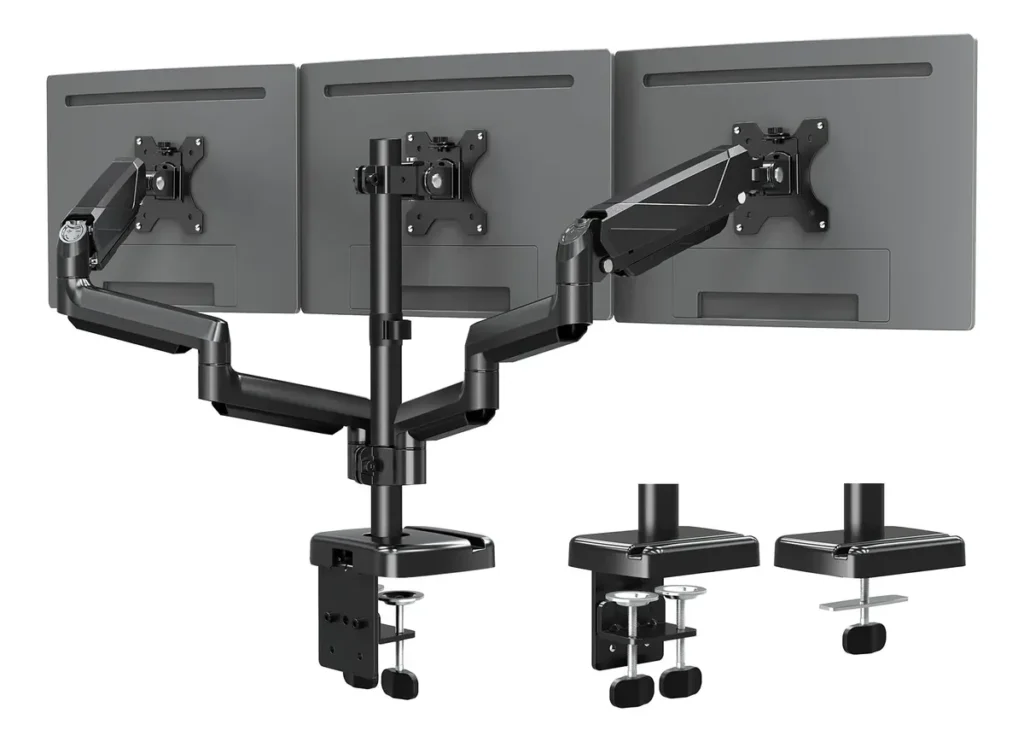 - Soporte de pie de piso: utilizado en oficinas o setups profesionales donde se necesitan varios monitores.
